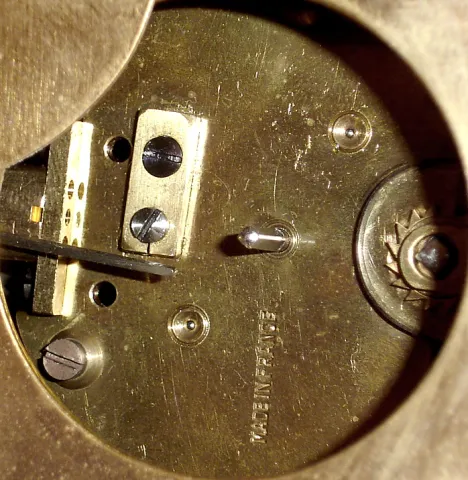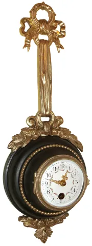 French, 8 day miniature bronze gilt wall cartel platform escapement timepiece, c1900.
