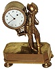 Figural timepiece in nice condition with much of the original gilding intact. Original porcelain dial has a repair at the winding hole. Hands are orig...