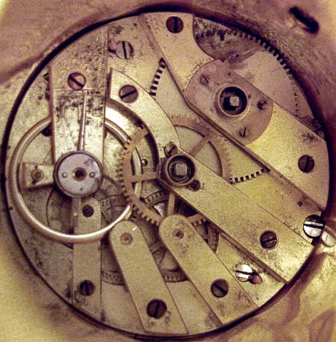 Gilt figure in good condition with some wear to the gilding. Ivory tusks on the figure are fine. Porcelain dial on the watch is perfect and the hands ...