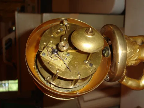 marble base and gilt figure has some roughness on the edges of the base. There is some loss of the gilding on the base the statue is mounted. The back...