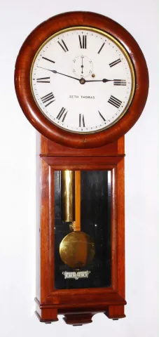 Seth Thomas Clock Co., Thomaston, Conn., "Regulator No. 2" 8 day weight driven walnut timepiece, 1886