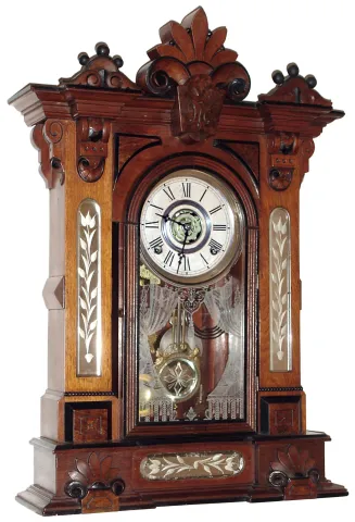 William L. Gilbert Clock Co., Winsted, Conn., "Amphion", 8 day, time and strike, mantel clock, c1885.