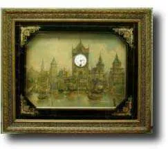 Musical picture frame clock, German c1900 Musical picture clock with balance wheel escapement and musical movement. Picture in glazed frame with corner features - 29"x24". German c1900