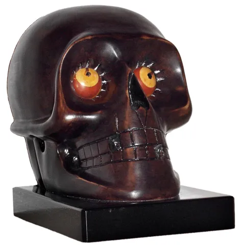 this piece is in excellent original condition and is running. The skull form is among the rarest and most desirable of Oswald's rotating eye time piec...
