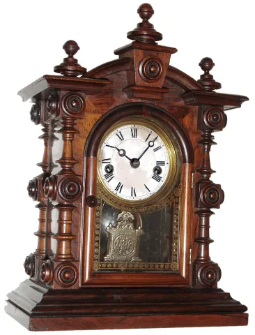 Rosewood and rosewood veneered case in fine condition in an original finish. There is small veneer repair on the curved top behind the front finials. ...