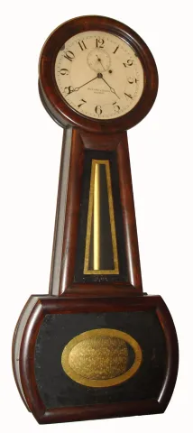 Howard and Davis, Boston, "No. 1 BANJO", in a rosewood grained over cherry case, and with large trapezoid movement with maintaining power, Geneva stop and seconds hand. From the Wasserman collection, c1850