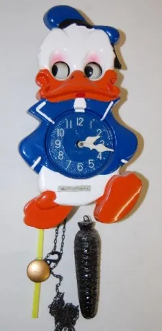 marked Mi-Ken and Walt Disney Productions; plastic with moving eyes; has pendulum and pinecone weight. Not tested. 10 3/4"...