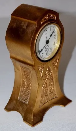 marked porcelain dial with seconds bit; metal embossed case. 8"...