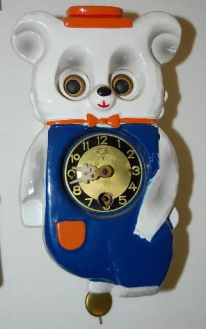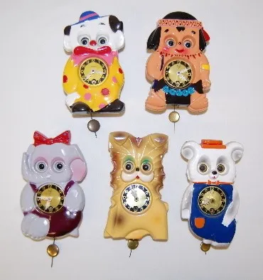 5 MI-KEN Plastic Figural Pendulette Clocks