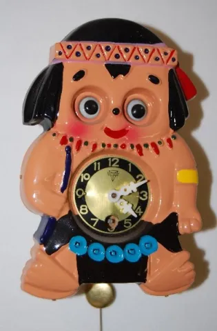 Elephant; White Bear; Dog; Clown and Indian. All have marked metal dial; pendulums and moving eyes; made in Japan. Not tested. 6"...