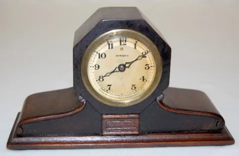 1.) Ansonia Octagon humpback mantel; marked paper dial. (Not running; dial yellowed.) 2.) New Haven humpback mantel; marked porcelain dial; running at...