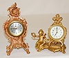 1.) New Haven decorative novelty clock; metal dial. 2.) New Haven Winged Cherub with wreath; porcelain dial. Not tested. Tallest 7"...