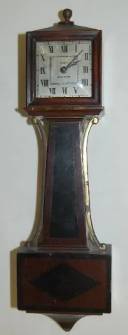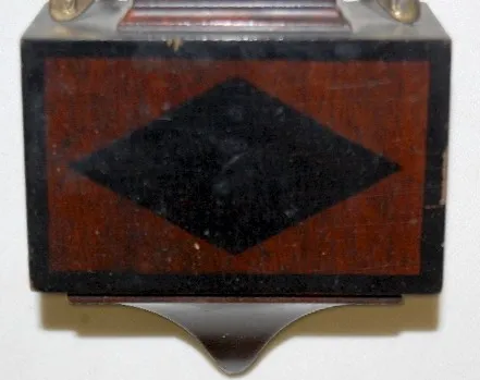 square top and bottom; 2 1/4" dial; fixed key wind movement; partially ebonized rosewood case. Running. 13 1/2"...