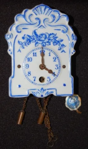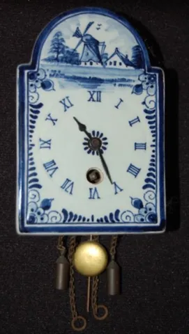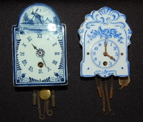 1.) Marked Delfs Blaun Made in Holland A.P.; Dutch windmill scene on the front; has pendulum. 2.) Marked with a sticker "Wintermantel Qualitat"; and i...