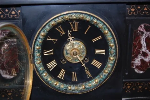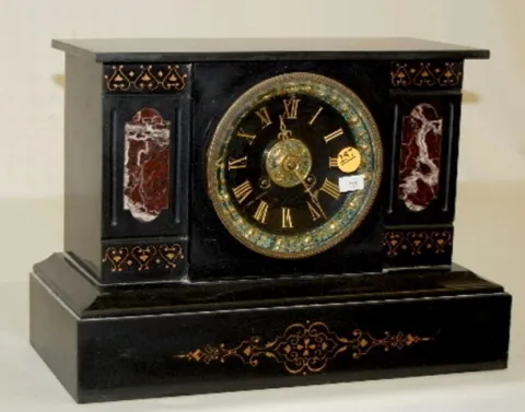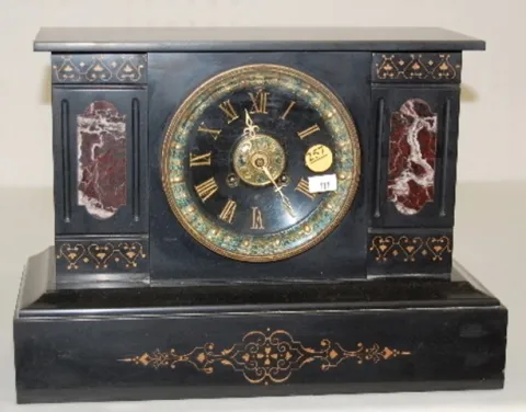 Japy Freres Slate & Red Marble Mantel Case Clock