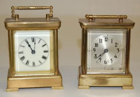 1.) Marked on silver dial and works Waterbury APRE; repeater; brass; (dial scratched). 2.) Unmarked porcelain dial; marked works Waterbury Wanderer; b...