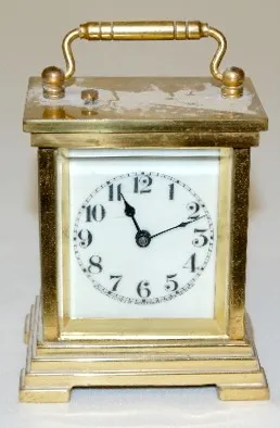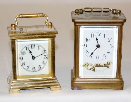 1.) French; in brass and beveled glass case; porcelain dial with visible balance wheel. (Dial cracked; stencil worn.) Not tested. 4 1/2" Tall. 2.) Wat...