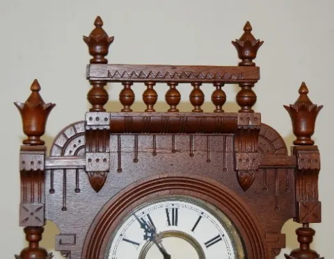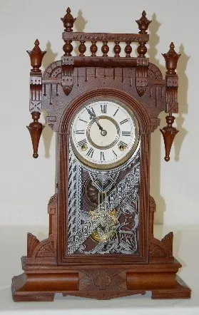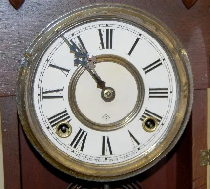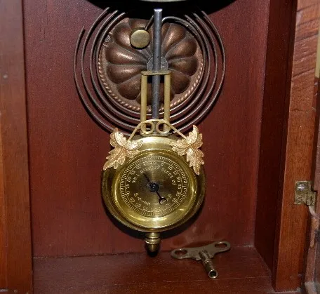 has Gilbert pendulum; has key; marked paper dial; 8 day, T &S; nice case; door decorated with gilt nude woman and griffin. (Dial looks new.) Running a...