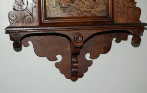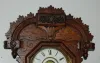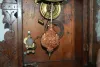 has pendulum and key; paper dial; T & S with alarm; gilt Heron decorated door. Running. 26"...