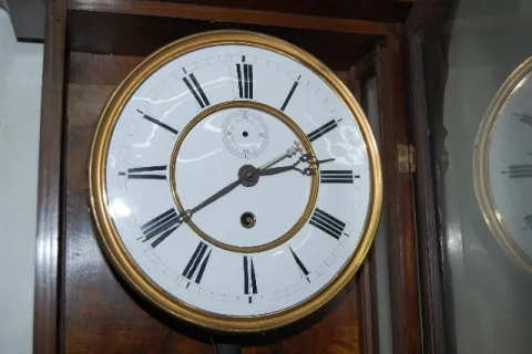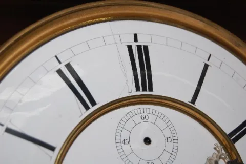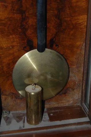 not signed; porcelain dial; TO; 1 weight and pendulum; 3561; seconds bit. (Missing finials; missing hands for seconds bit.) Not tested. 47"...