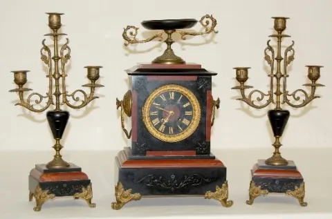 L. Marti & Cie Marble and Slate 3 Pc Clock Set