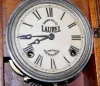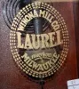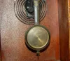 has pendulum and key; paper dial advertising Winona Mills Laurel Fancy Flour, Milwaukee; gilt decoration on the glass door is "Winona Mills Laurel Fan...