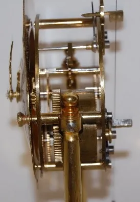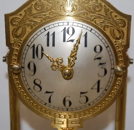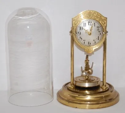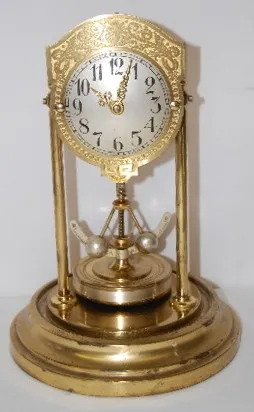 silver metal dial with gold embossed back plate; rotating pendulum; brass movement No. 23846; letter from owner identifying this clock. Running. (Minu...