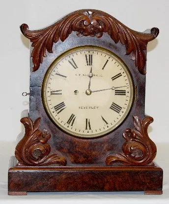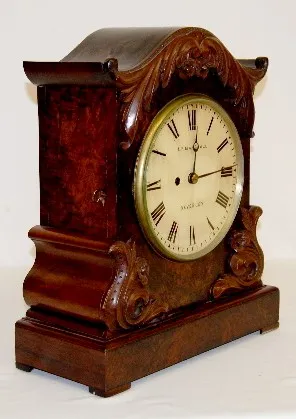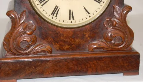 H. P. Marshall Burl Wood Fusee Mantel Clock
