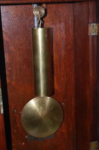 has pendulum and weight; marked Seth Thomas metal painted dial with seconds bit; keyhole off set by 2:00; oak veneer case. Not tested. 35"...