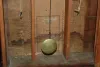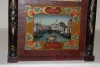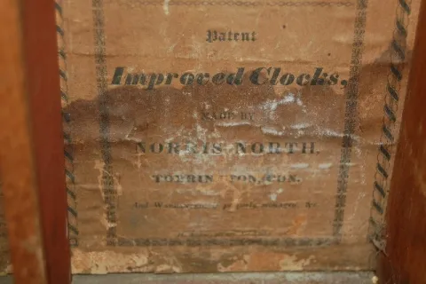 Has pendulum; East-West movement; stenciled columns and cornice; Moberg glass scene of Boston. (No weghts.) 25 1/2"...