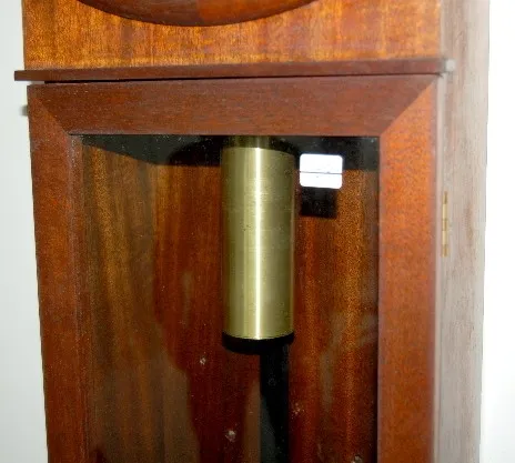 has pendulum and weight; Seth Thomas dial with seconds bit; keyhole off set at 2:00. Not tested. 35"...