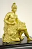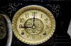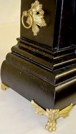 With an 8 day T&S movement and an ornate gold colored metal dial with raised numerals. The case has metal side ornaments and feet; there is a Roman so...