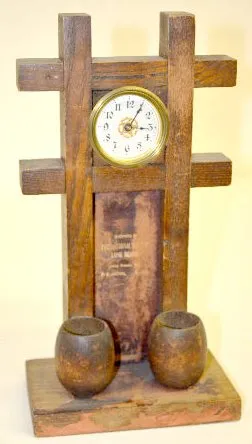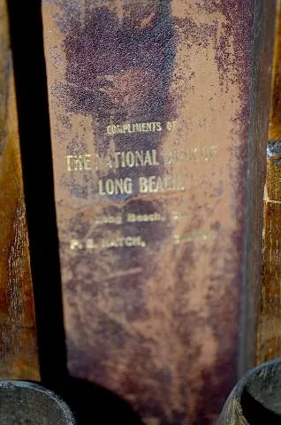 With set key wind movement. The leather center is stamped "Compliments of The National Bank of Long Beach, Long Beach, Cal., P.E. Hatch, Cashier". The...