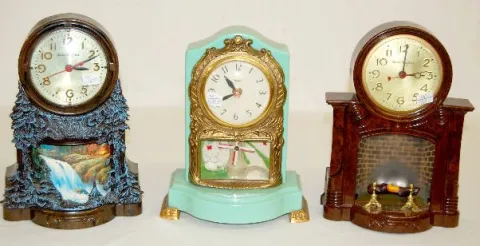 3 Mastercrafters & united Lighted Motion Clocks: 1.) Electric United Windmill Clock: With a marked decorated dial. The scene lights and the windmill t...
