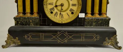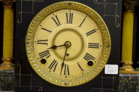 With a signed T&S movement; an unmarked paper dial; and the pendulum. Not tested. (There is no key with the clock.) 11 1/4" Tall...