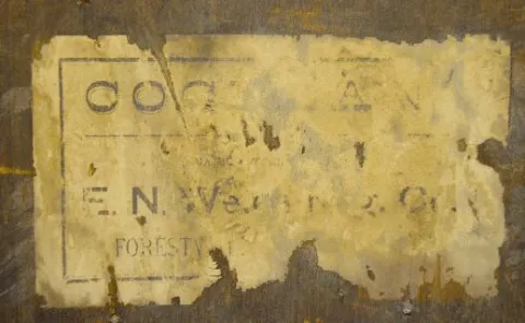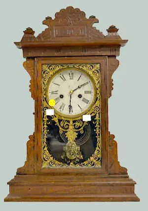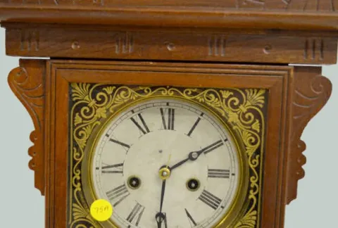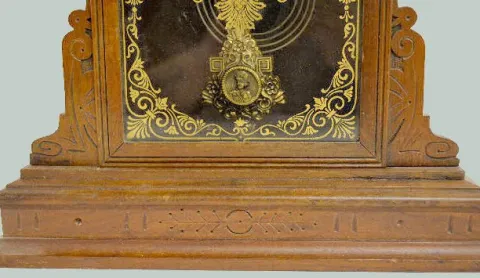 With an 8 day T&S movement; an unmarked paper dial; a partial paper label on the back and a pendulum. Not tested. (The pendulum is too long.) 21 1/8" ...