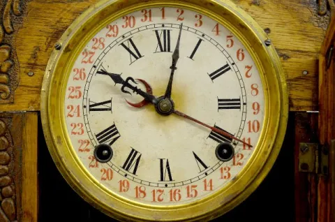 Ingraham "Gila" Oak Calendar Kitchen Clock
