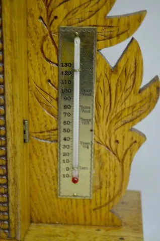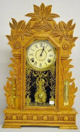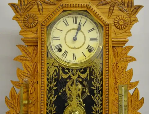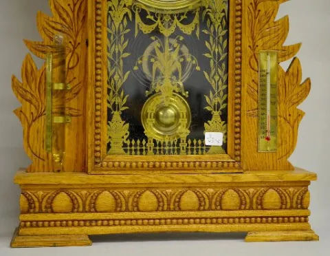 With Barometer and Thermometer; a T&S movement; a paper dial marked "Gilbert" and the pendulum. The clock is running and striking at this time. (The b...