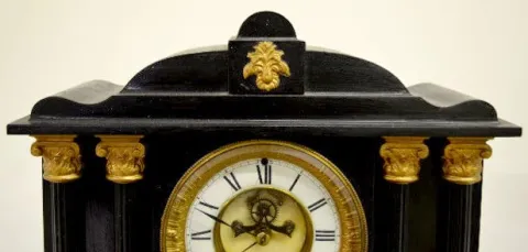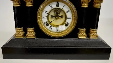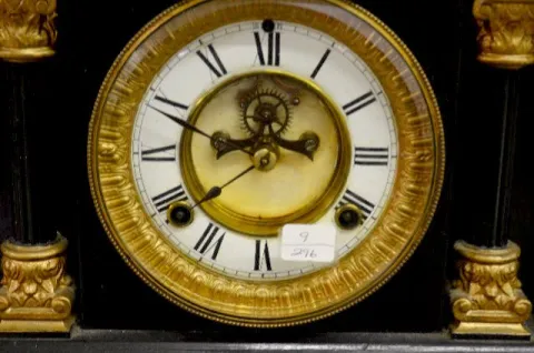 With a T&S movement and an unmarked porcelain chapter ring dial with open escapement. Although the clock was not tested for working condition it does ...