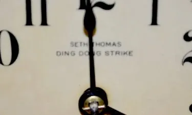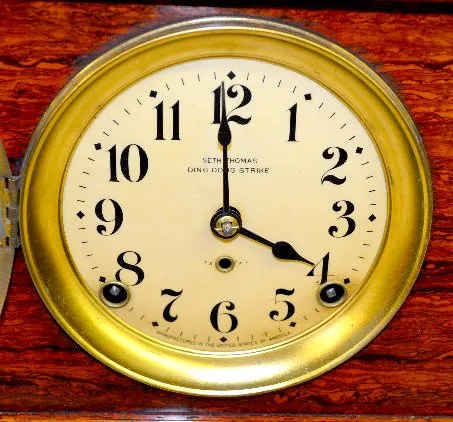 The celluloid dial is marked Seth Thomas Ding Dong Strike; the movement is marked S.T. #80T; has the pendulum and key with it. The clock is running at...