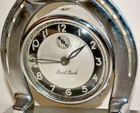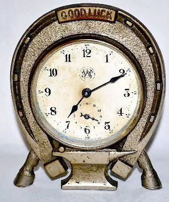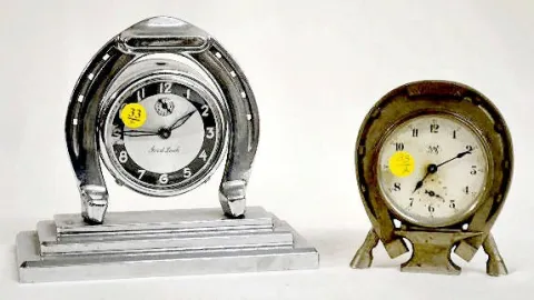 2 "Good Luck" Horseshoe Alarm Clocks, Welch