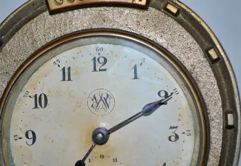 1.) Welch, with a set key wind signed movement; a marked metal dial and a label inside the back cover. (The clock is not running - it is wound tight.)...