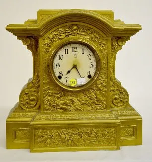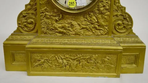 Waterbury Metal Mantel Clock with Hunt Scene