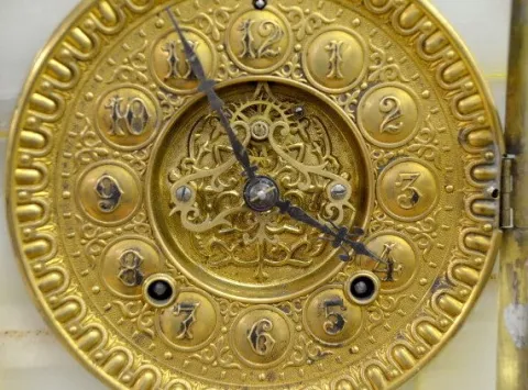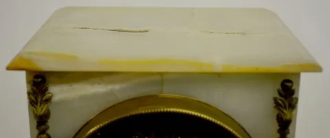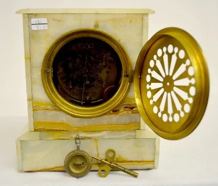 Gilbert Onyx Mantel Clock, Fancy Brass Dial