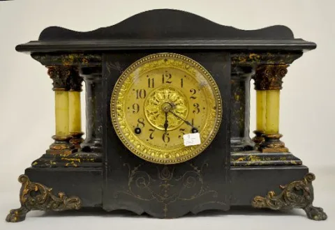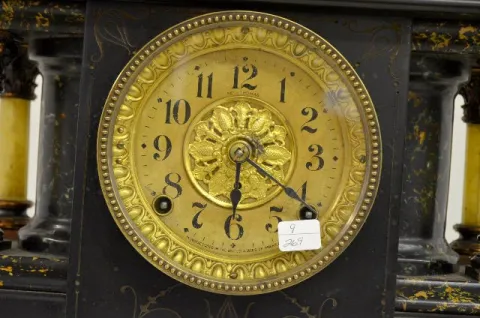With a T&S movement; a paper dial marked "Seth Thomas"; a paper label on the back and the pendulum. Not tested. (There is no key with the clock.) 11 1...