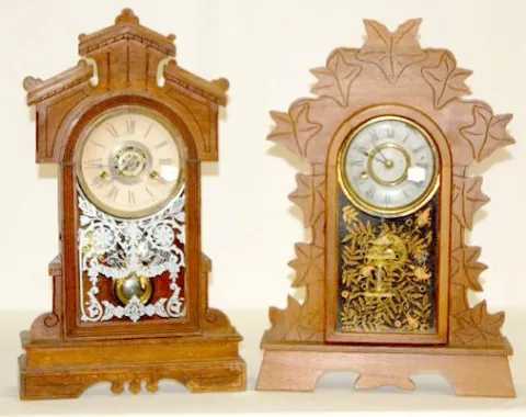 2 Walnut Kitchen Clocks; Gilbert & New Haven