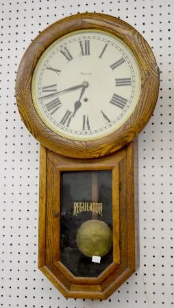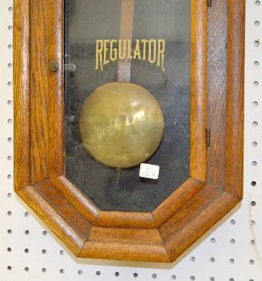 With a TO movement; a paper dial marked "Ansonia"; and "Regulator" stenciled on the door. The pendulum is with the clock. Not tested. (The bottom glas...