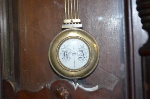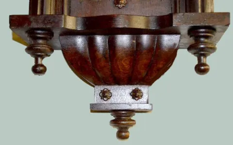 With an 8 day T&S movement; a marked porcelain dial and a R.A. pendulum. Not tested. 31" Long; 29" Long without bottom finial...