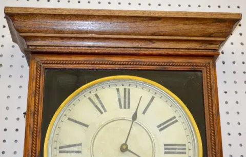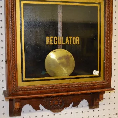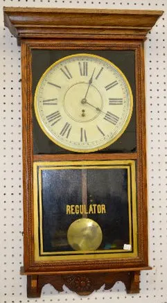 With a TO movement; a painted metal dial marked "Sessions"; "Regulator" stenciled lower door and a label on the back that reads "No. 9136 No. 9137". T...