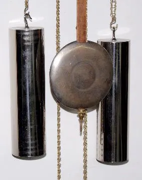In a nice case with nickel weights and pendulum. Not tested. Dial - 7 1/2" Diameter; Case - 18" Long, with out the pendulum and weights....